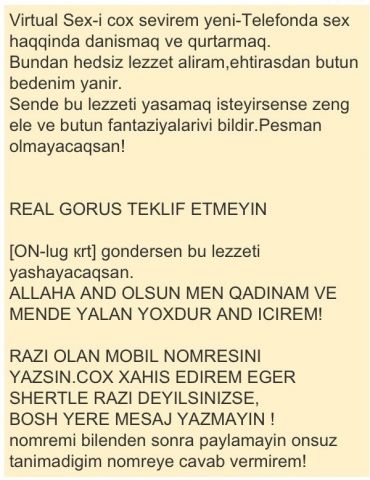 ALLAHA AND OLSUN MEN QADINAM VE MENDE YALAN YOXDUR AND ICIREM!